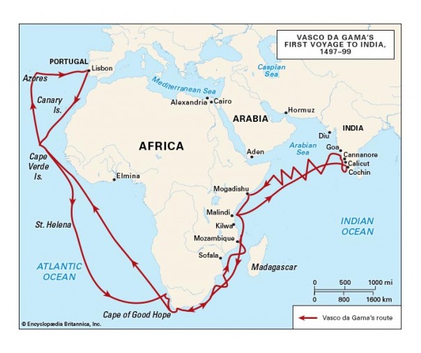 Pada masa Raja Manuel I, Portugal berambisi mencari jalur laut menuju Asia untuk memperoleh rempah-rempah. Tahun 1497, Vasco da Gama ditugaskan memimpin empat kapal dengan sekitar 170 awak untuk menemukan rute tersebut. Ia berlayar dari Lisbon menyusuri pantai barat Afrika, lalu mengitari Tanjung Harapan di ujung selatan benua itu. Setelah singgah di Mozambik dan Malindi, dengan bantuan seorang navigator lokal, armadanya menyeberangi Samudra Hindia dan tiba di Calicut, India, pada 20 Mei 1498.